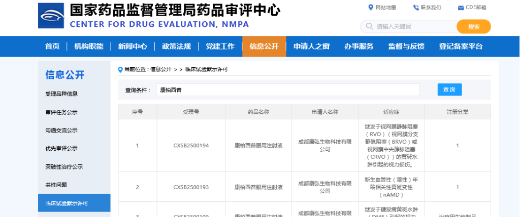 康弘藥業(yè)高劑量康柏西普眼用注射液獲批臨床